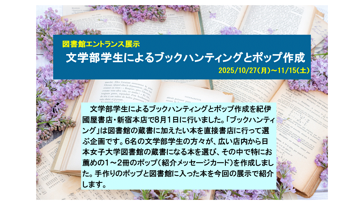 図書館展示:「文学部学生によるブックハンティングとポップ作成」